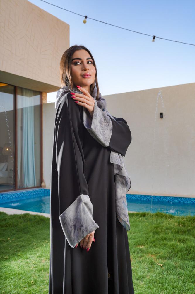 عباية مصممة بعناية من قماش "لمسة" الفاخر والمريح، مع تفاصيل شيفون تضيف أنوثة ورقي.