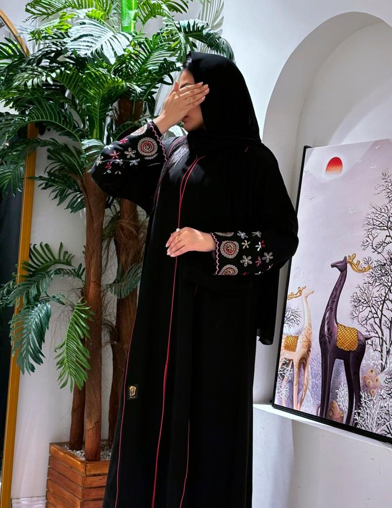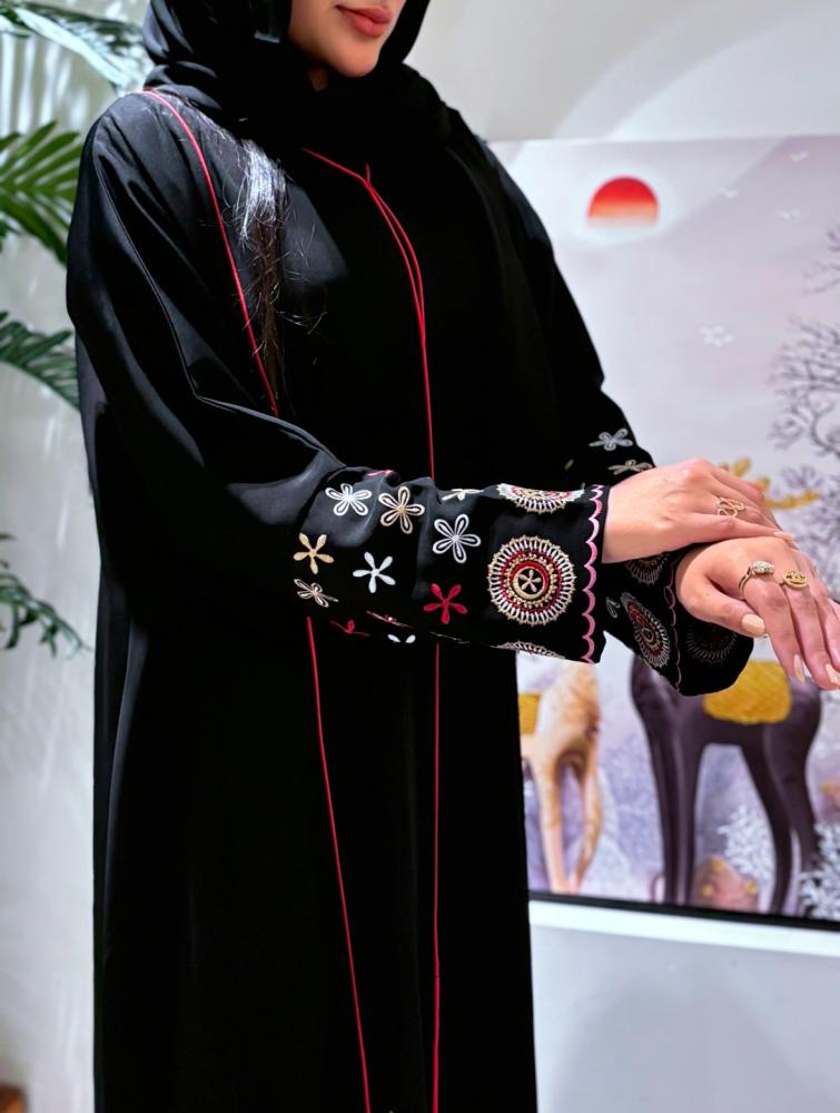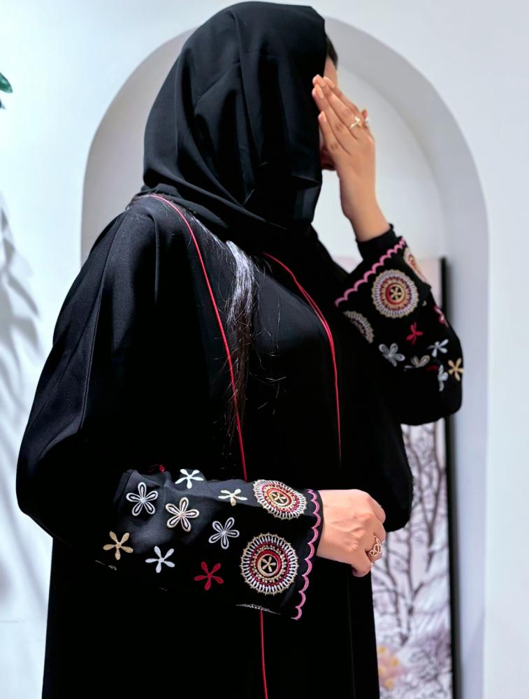 عباية مطرزه ، عباية مزينه بتطريز ناعم ملون